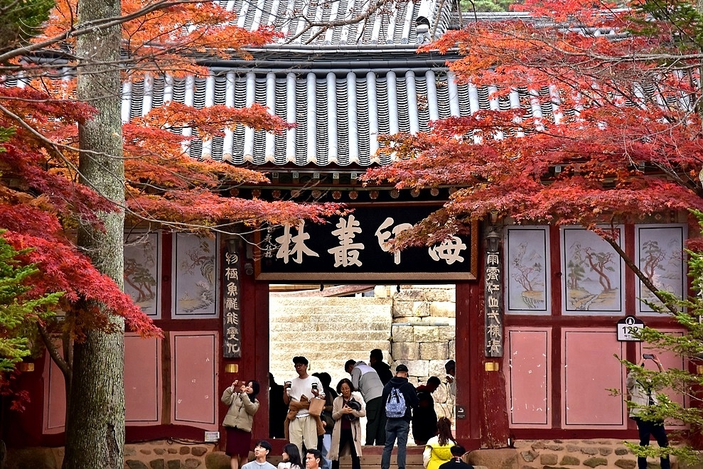 韓國的文化遺產,根據其歷史、藝術價值和保存狀況,分為幾個不同等級,其中,最高、最珍貴的等級是為「國寶」。而韓國唯有兩座國寶級古寺,分別是慶尚北道的慶州佛國寺與慶尚南道的伽倻山海印寺,每逢深秋,兩寺更是世界遊客趨之若鶩的最佳賞楓地點。這次抓準時機,就衝著楓紅而來!首先來到位於慶尚南道陝川郡伽耶山西南山麓,海拔1430公尺深山中的【海印寺】。