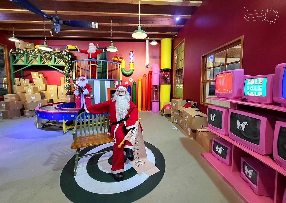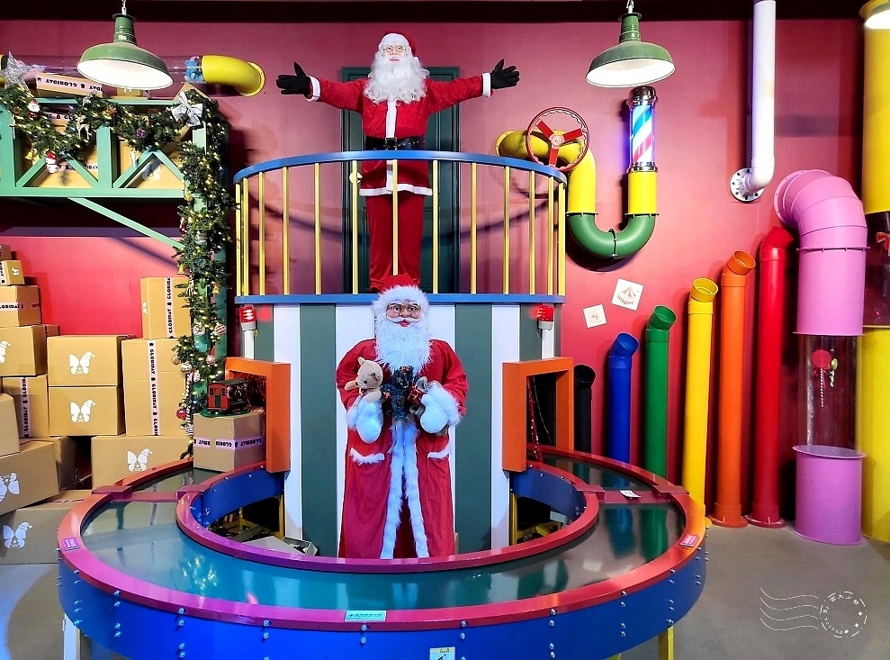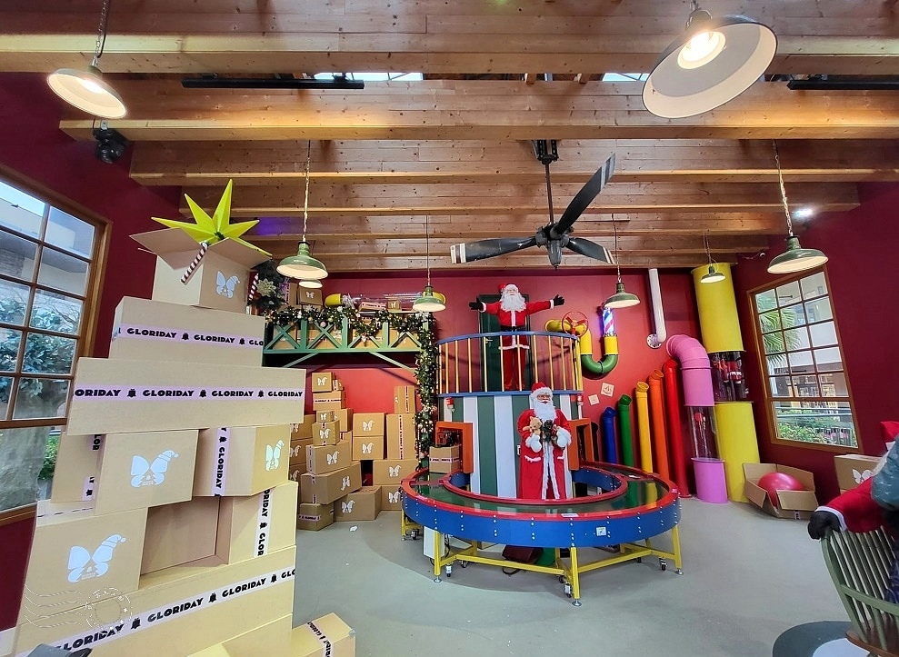 ↓木屋內表達聖誕老公公的禮物工廠,從老公公窺視購物狂的聖誕願望清單、確認訂單、到禮物包裝與配送,每一個細節都充滿童趣與驚喜,讓遊客彷彿置身於聖誕禮物供應鏈的奇幻旅程中。