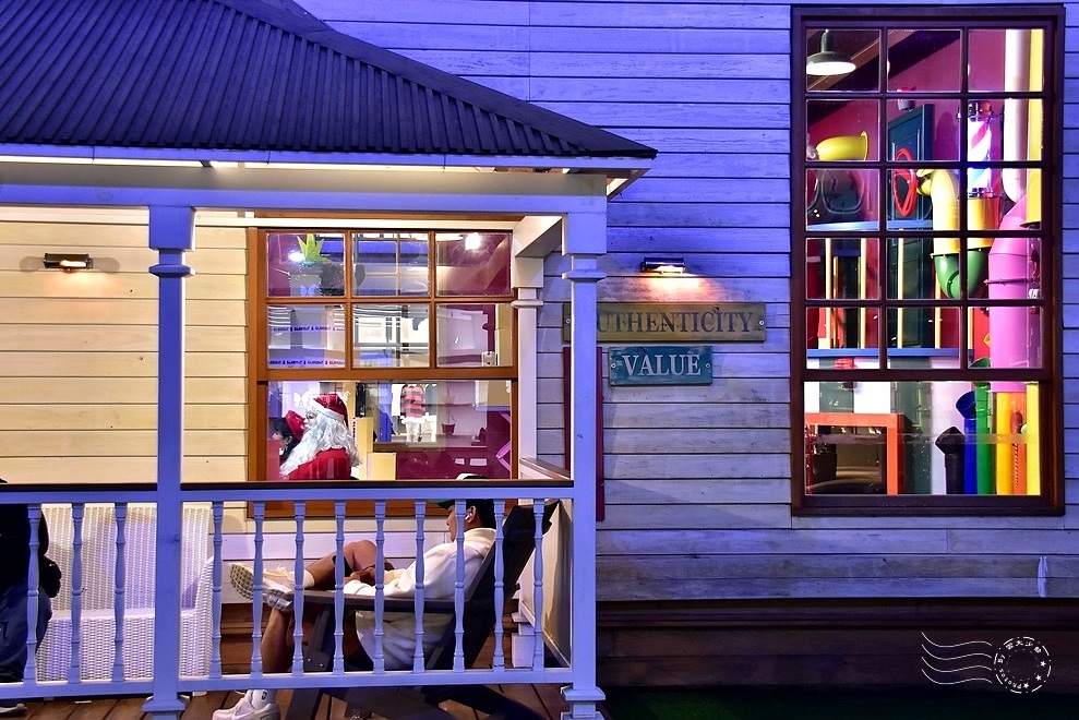 一輪血拚,回到聖誕夢工廠,美式木屋前已出現等候與聖誕老人合影的人龍了。